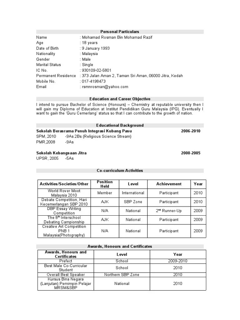 Contoh Resume Untuk Lepasan Spm / Contoh Resume Lepasan Spm Yang Ringkas Simple Dan Terbaik Otosection